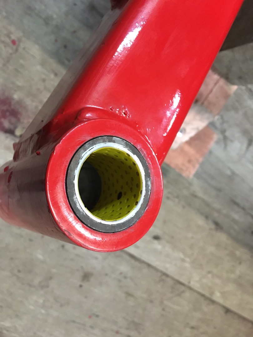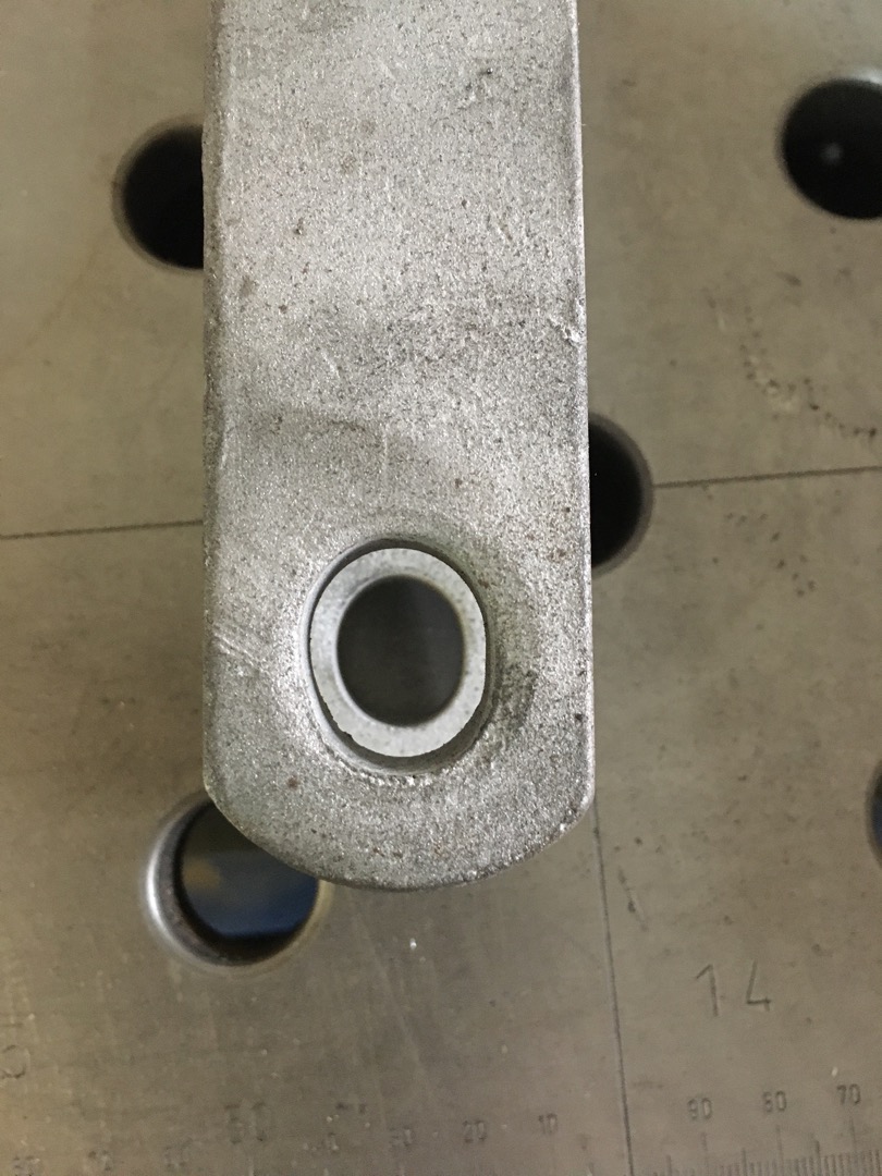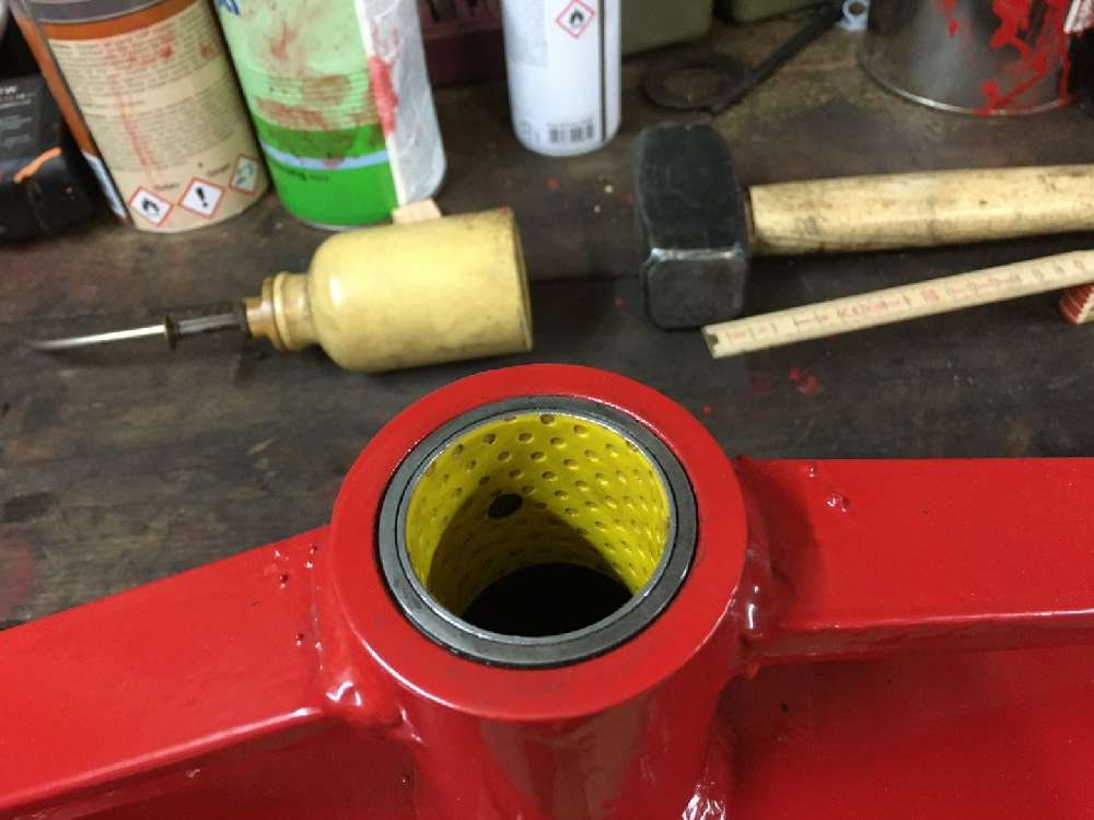 Unten wo das Axiallager läuft. Die Gussbüchsen wurden ausgedreht und mit