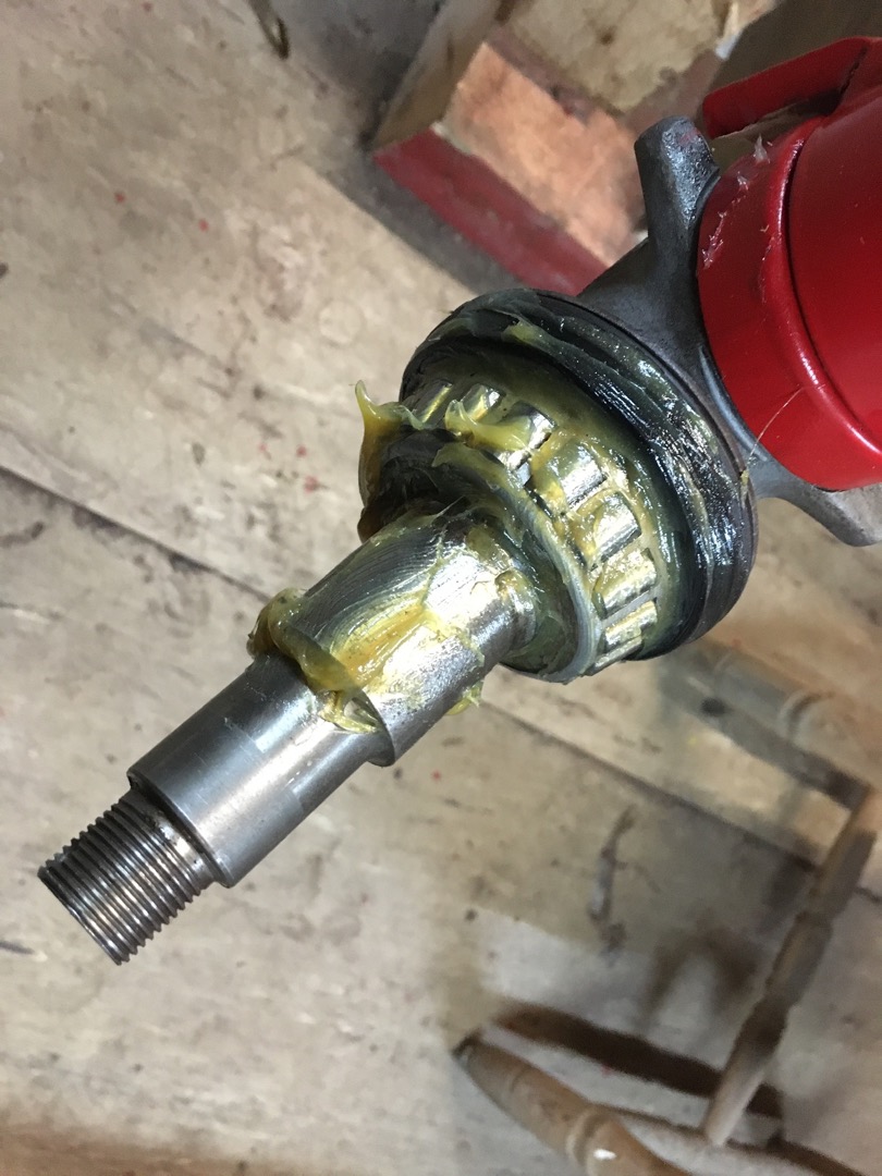 Dann kann der Achsschenkel, gut gefettet eingeschoben werden