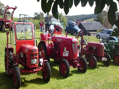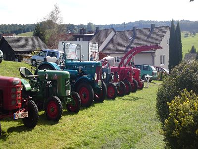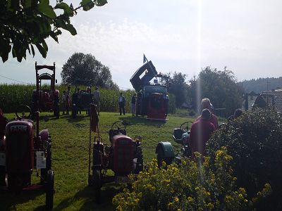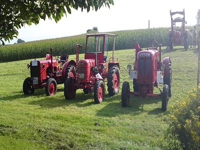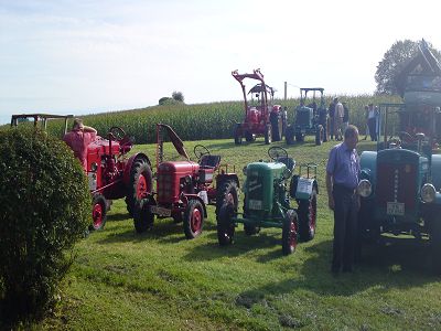 Bei wunderbarem Wetter machten wir (ich und mein D270-er) uns auf nach Hoppetenzell zum Dorffest und einem kleinen Schleppertreffen, das ja in den Terminen auf unserer Homepage aufgeführt war. Nach fast 2 Stunden Fahrt über Ramsen (CH) Singen, Steisslingen, Orsingen - Nenzingen trafen wir in Raithaslach bei unserem 2. Vorsitzendem Karl Heinz Rigling ein. Von da an waren wir zu dritt. (zwei FAHR und ein Kramer)