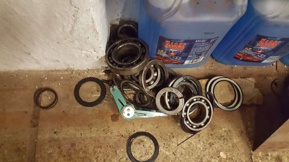 Es hat sich wieder etwas getan. Bremsen sind gereinigt. Und bei 0,5 mm Verschleiß auch drinn geblieben. Habe Lager und Wellendichtringe ausgetauscht.