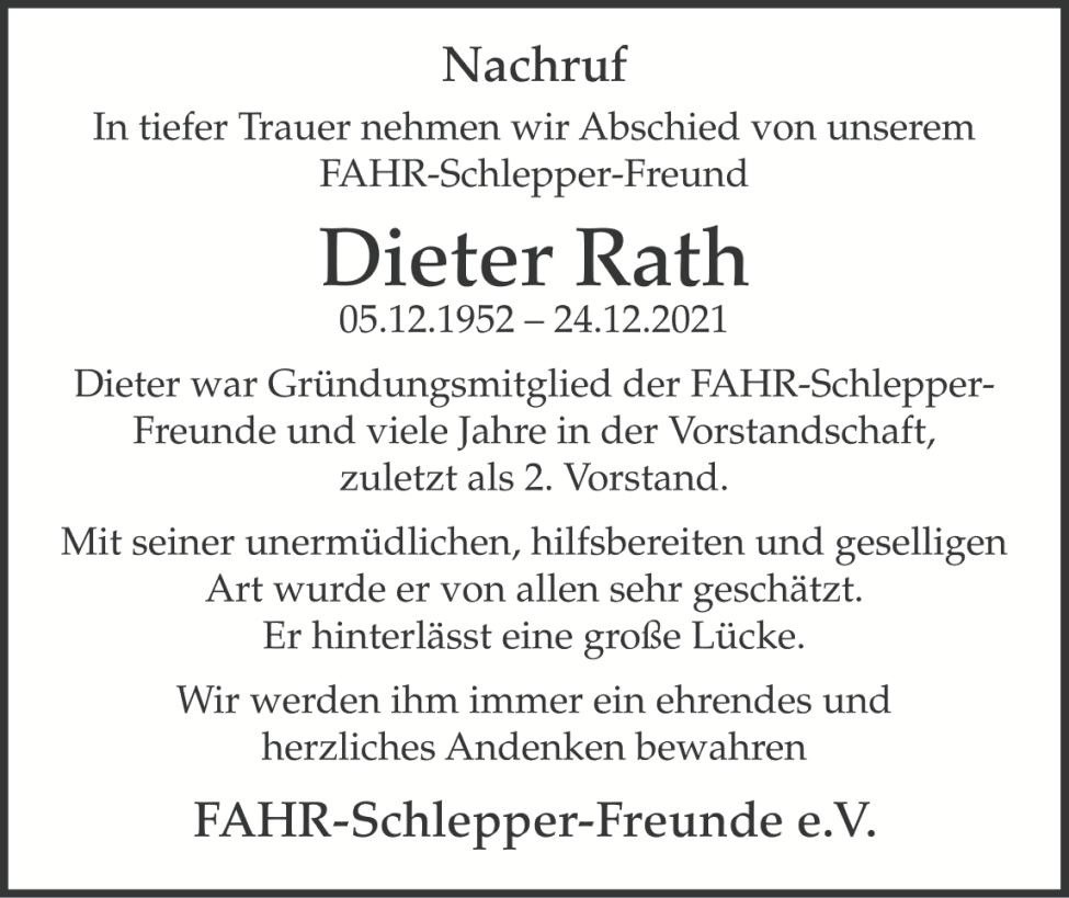 In tiefer Trauer geben wir davon Kenntnis, das Dieter Rath am 24.12.2021