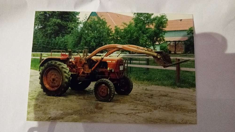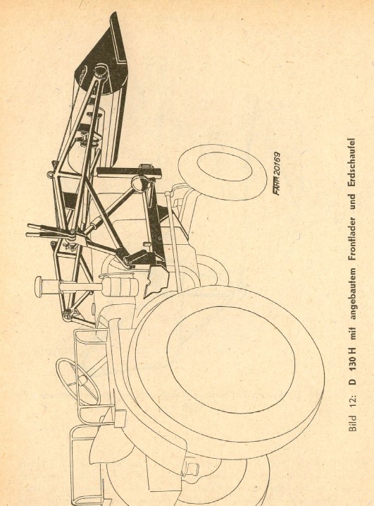 mit dem Frontlader kann ich dienen. Hängt aber am D180H, nicht am D130. Da ich absolut keine aktuellen Bilder habe, ein Bild abfotografiert vom Papierabzug. Das war Sommer 1990. Der Frontlader wurde 1959 nachgerüstet. Der D180H ist EZ 1958, gebaut Ende 1957.
