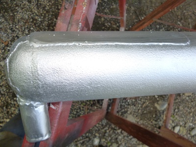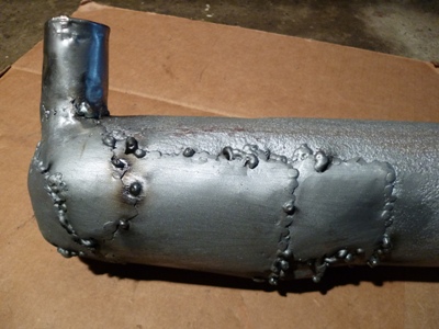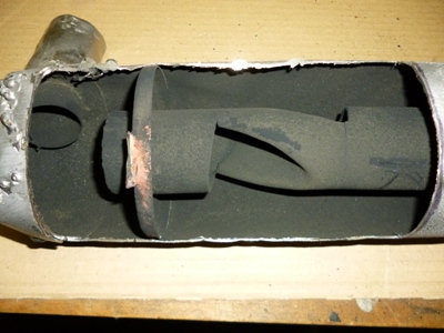 vorläufig habe ich den Schalldämpfer wenigstens mal überarbeitet. Der Vorgänger hat beim Schweißen doch arg gepfuscht, deshalb habe ich den Schalldämpfer aufgetrennt und ein Stück neues Blech eingeschweißt. Im Winter gibt es dann eine Neuanfertigung.