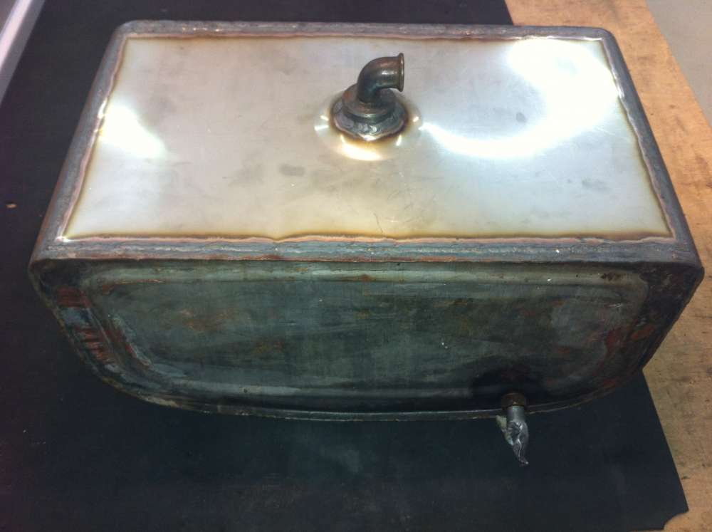 Grund dafür war wohl die weiche, Wasser aufsaugende Tankunterlage. Und weil sich der Befall auf die komplette Unterseite bezog, kam das zuschweißen einzelner Löcher nicht in Frage. Den gelöcherten Boden habe ich dann herausgetrennt und einen neuen wieder eingeschweißt. Jetzt kann er erst mal wieder 60 Jahre lang dicht halten.