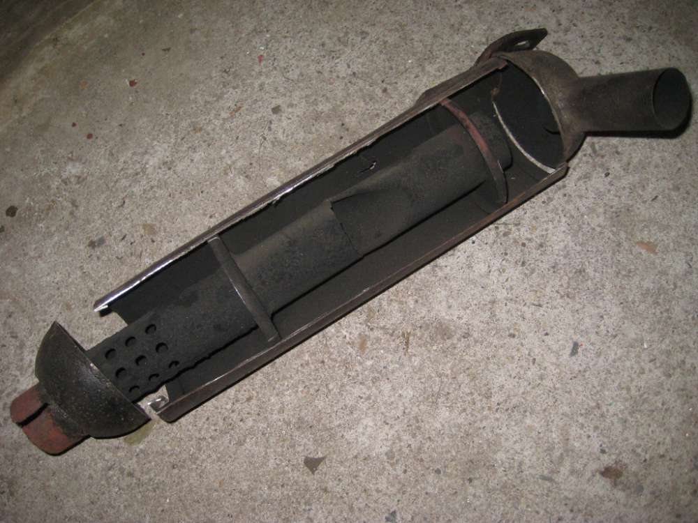 Na mein letzter Beitrag ist schon eine ganze Weile her. Einerseits habe ich aus zeitlichen Gründen nicht viel geschafft und zweitens war wohl auch Schreib-Faulheit im Spiel. Da der Auspuff bereits an mehreren Stellen durchgerostet war und auch sonst nur noch sehr dünnes Blech hatte, musste ein Neuer her. Die angebotenen, ähnlichen Modelle schienen mir nicht passend, da sie entweder andere Anschlüsse haben oder für Einzylinder-Motoren gebaut sind. Originalgetreu sollte er schon sein, und so habe ich den Alten erst mal obduziert.