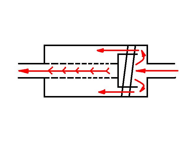 Da Ein- und Ausgang des Mittelrohres jeweils auf der gegenüberliegenden Seite sind, muss das Gas in allen Kammern verwirbeln und verliert dadurch an Lautstärke und ein gewisser wohl wichtiger Gegendruck kommt auf.