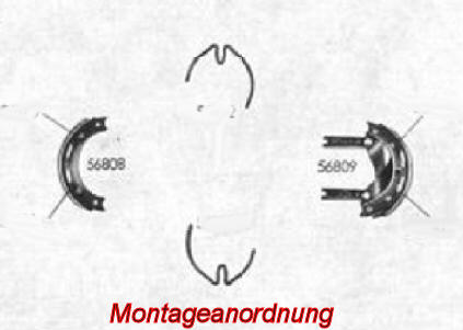 Es liegen sich immer ein langer und ein kurzer Schenkel der Bremsbackenfeder gegenüber. Niemals liegen die Federschenkel übereinander.