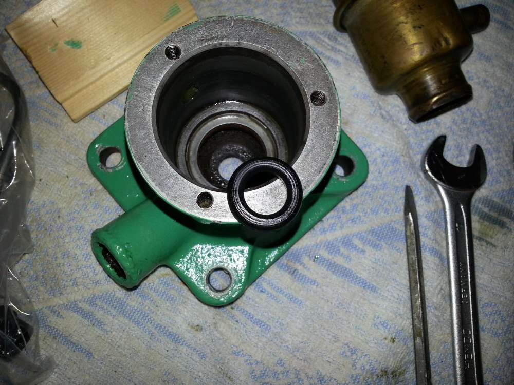 während den Probefahrten habe ich festgestellt, dass aus der Kühlwasserpumpe mit Wasser versetztes Fett austritt und sich wunderbar überall verteilt. Habe jetzt die Pumpe komplett zerlegt und will alle Dichtringe (2x Gummi O-Ringe und Filzdichtring) ersetzen. Ausserdem überlege ich, ob ich mir eine neue Abstandsbüchse drehe (die wo im Filzdichtring läuft, ist ziemlich eingelaufen).