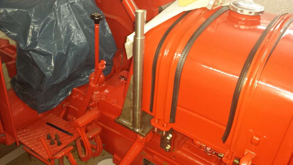 Nachdem Alles geschweißt und anschließend gerichtet wurde, stehen die Aufnahmerohre an beiden Seiten des Tanks nach oben,ohne diesen zu berühren.