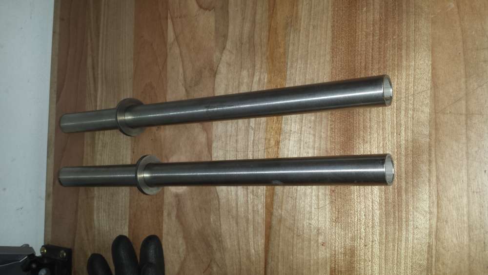 Die Rohre, die später in die Halter gesteckt werden sind auch vorbereitet. Die Ringe sind M20er U-Scheiben, die nahezu den perfekten Innendurchmesser für 21,3mm-Rohr haben. Nur schnell innen den Grat wegdremeln und schon paasen sie.