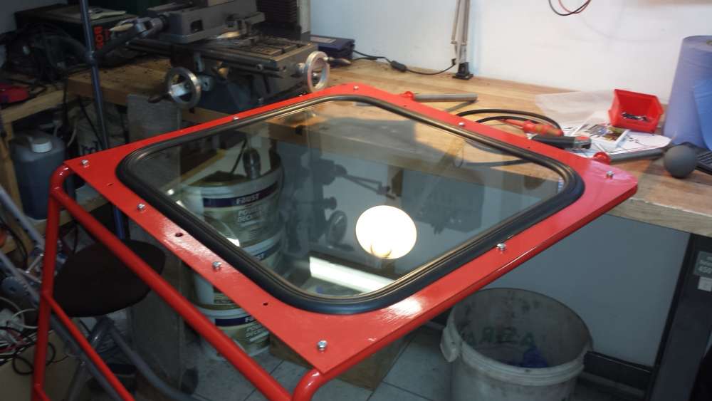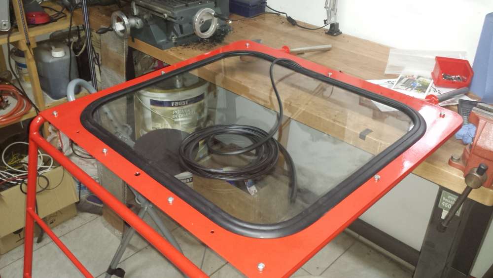 Heute war es nun bei mir soweit. Die Scheibe kam in den Rahmen. Die Scheibe in den Scheibengummi zu legen ging noch halbwegs gut. Immer schön langsam und mit Geduld.