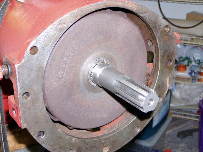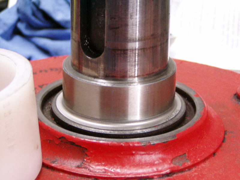 Nabenwelle mit der Wellenschutzhülse. Durch das minimale Abdrehen der Welle, waren die Riefen noch deutlich vorhanden --> mit Kaltmetall geglättet und vor Härtung die Hülse darauf geschoben.