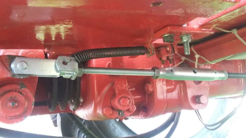 Mit den neue eingesetzten Wantenspannern kann ich nun sehr sauber und ohne großen Aufwand die Einstellung vornehmen. Ganz wichtig: die Bremshebel müssen auf der verzahnten Achse so ausgerichtet werden, dass der Einsetllungsspielraum über die Gestänge geewährleistet ist. Sitzen diese falsch, erzielt man entweder keine oder zu schwache bzw. im umgekehrten Fall eine blockierende oder zu starke (Bremse öffnet nicht komplett) Bremswirkung.