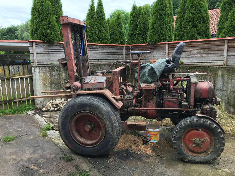 Hallo Fahrfreunde, ein freund von mit hat diesen fahr traktor- stapler für kleines geld gekauft von einer metallbau firma welche bis in die 60er jahre eine Landmaschinenwerkstatt mit fahr vertretung war. Nun die frage was das für ein grundgestell ist da er einige ersatzteile braucht, um ihn zum laufen zu bringen.