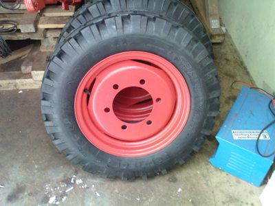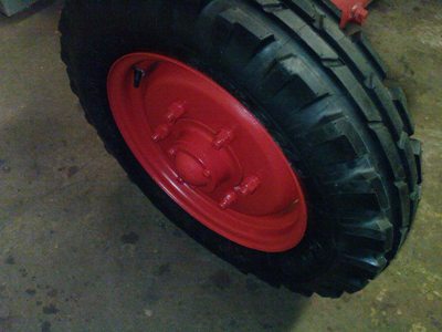 Habe Reifen der Grösse 6.00x16/8 PR besorgt, das ist besser für den Frontladerbetrieb und passen auch gut zu den Radial Hinterreifen der Grösse 13.6x28