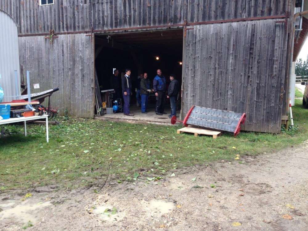 Sieht doch gut aus, 10 Mann beim aufräumen einer Scheune.
