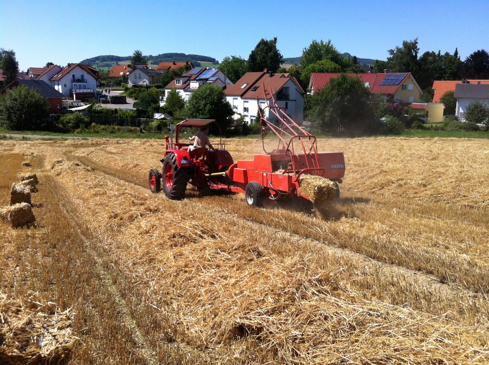 anschließend muss das Stroh gepresst werden.