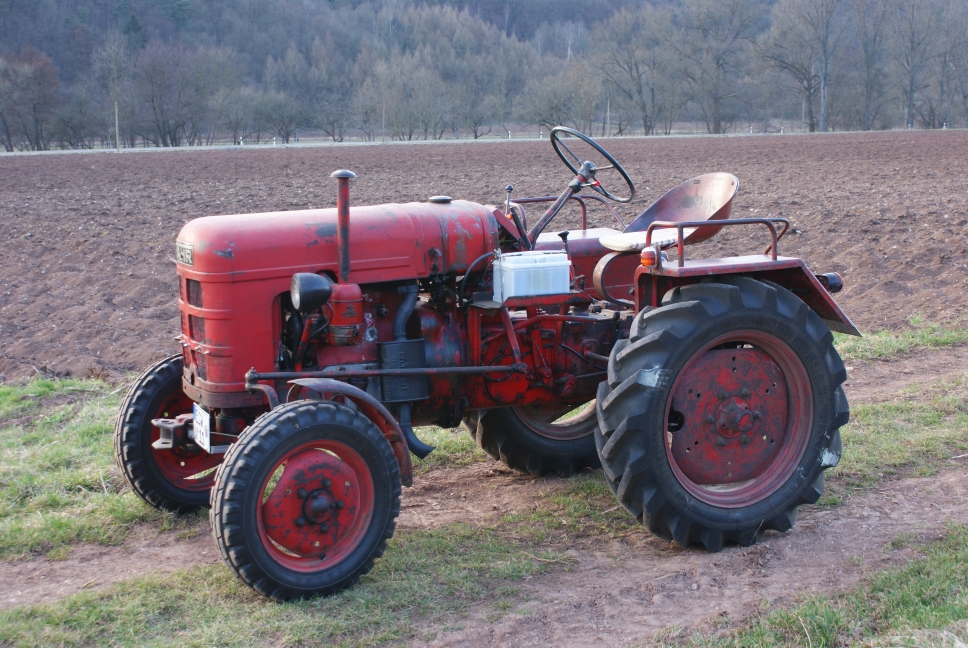 Verkaufe meinen D17 Bj. 51 Die Maschine befindet sich im Original-Bauern-Zustand, hat eine sehr schöne Patina! Sie läuft tadellos, springt immer zuverlässig an und tropft natürlich hier und da - wie es sich nunmal für eine Maschine diesen Alters gehört! Natürlich sind im Laufe der Zeit einige "Verbesserungen" vorgenommen worden, so ist z.B. mal die Elektrik erneuert worden. Die Reifen haben vorne wie hinten 95%. TÜV ist abgelaufen. Original Brief vorhanden. Der Trecker steht in 37276 Meinhard.