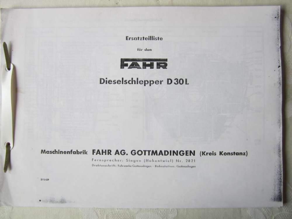 Ersatzteilliste fuer FAHR D 30L abzugeben.