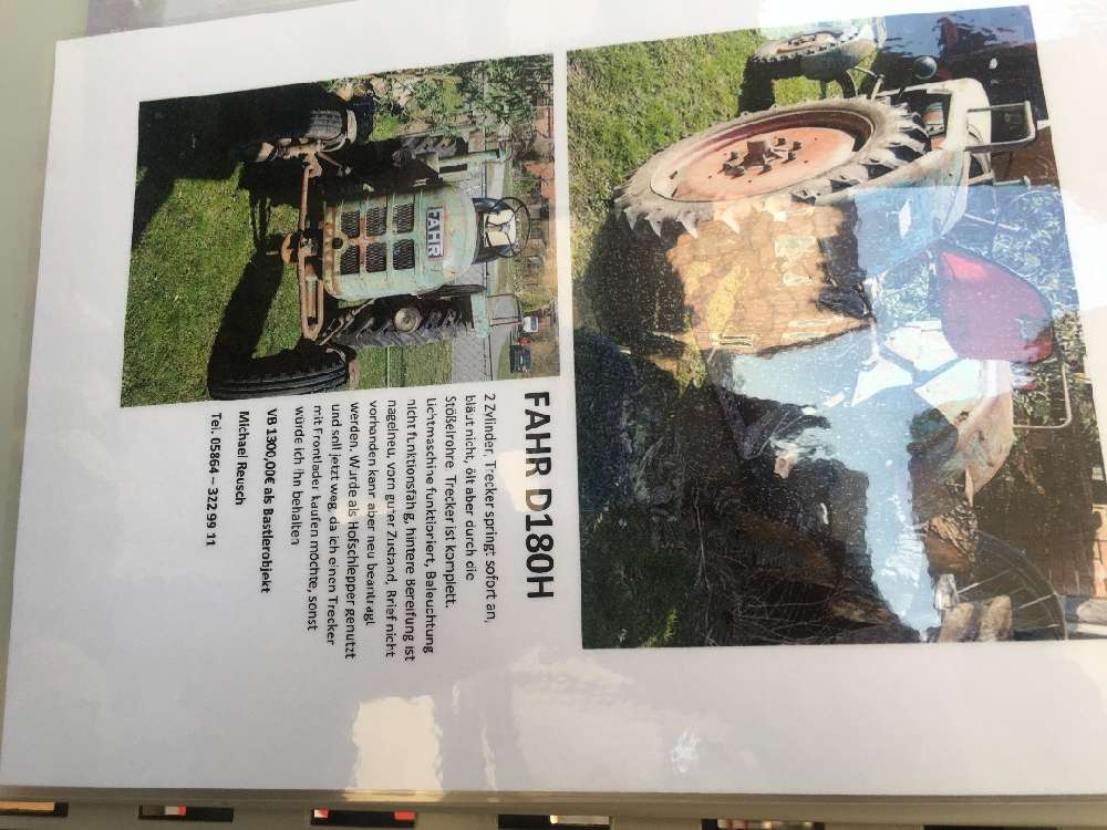 An meiner Tanke in Clenze hing ein Zettel, Fahr zu verkaufen, Hoftrakteor Fahr komplett alles laäft, ölt leicht D180H 1300 €.
