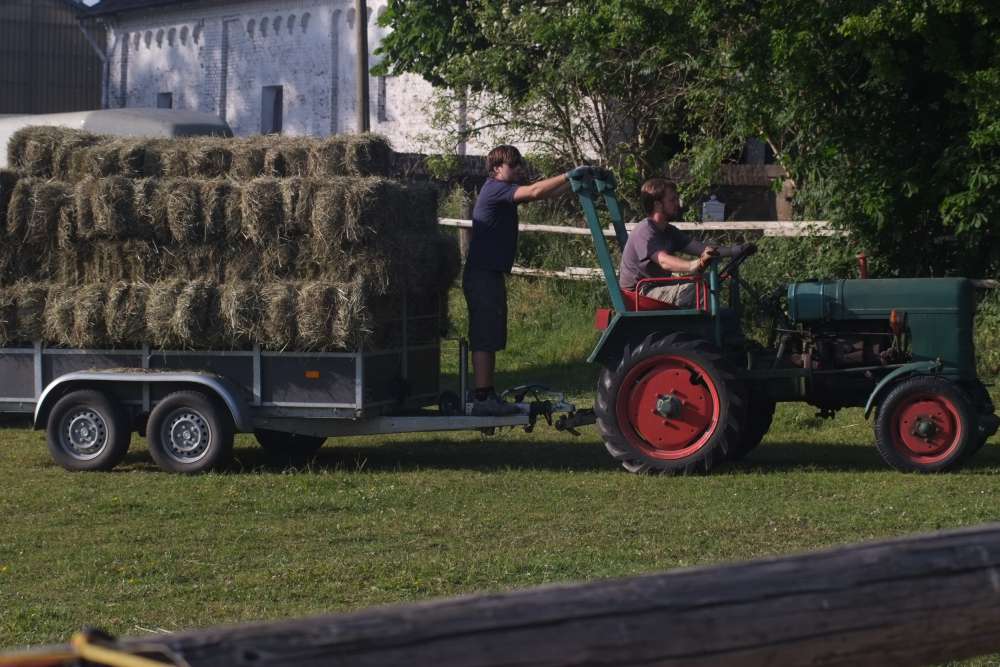 Zudem zieht er den Heuanhänger oder PKW-Anhänger bei der Heuernte, der Reparatur der Weidezäune oder Transport von Baumaterial.