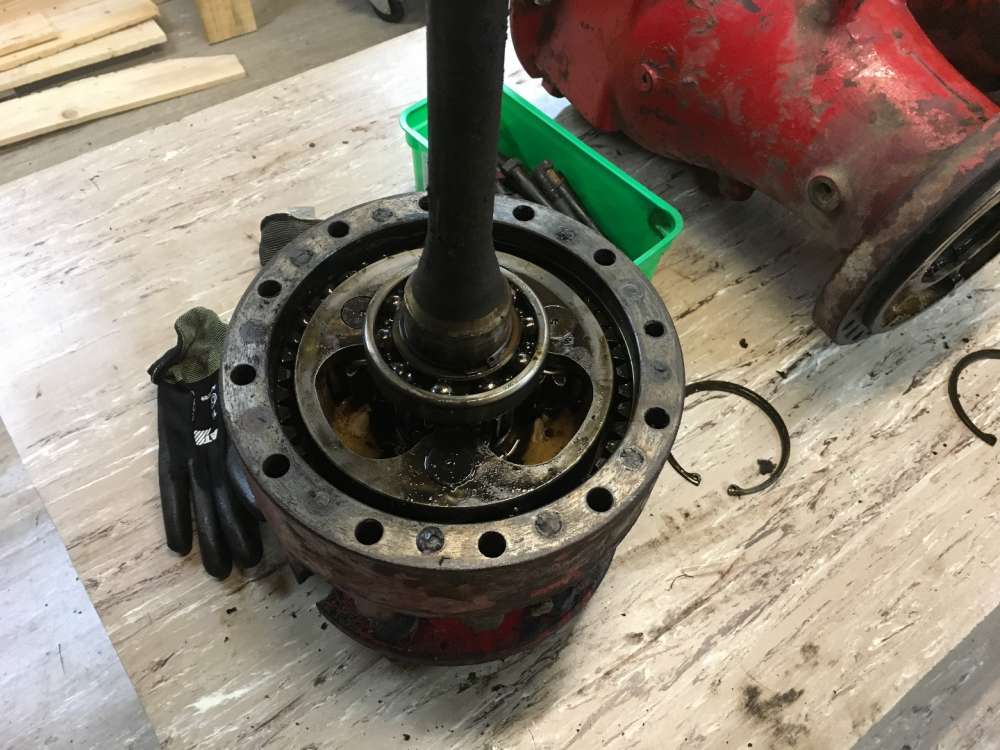 Planetengetriebe zerlegen, da der Simmering undicht und sicherlich die Achswelle eingelaufen ist