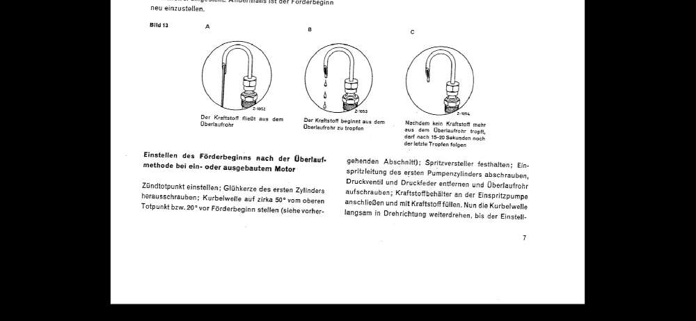 Die Einspritzpumpe wurde heute (Förderbeginn) eingestellt
