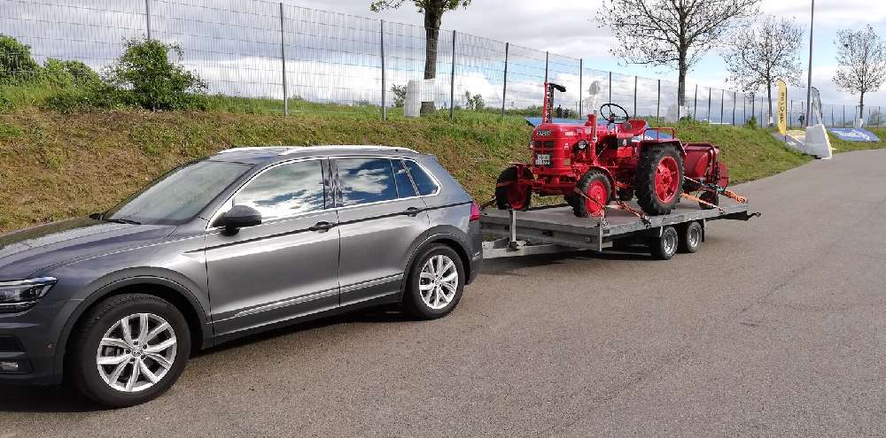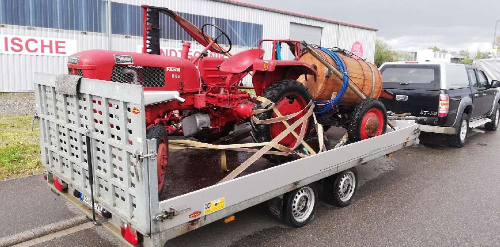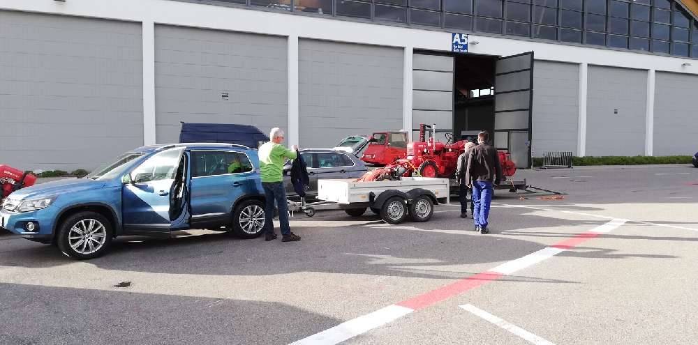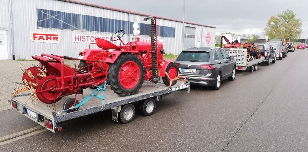 transportiert, gar nicht so einfach da die Traktoren einiges Gewicht auf den Anhänger