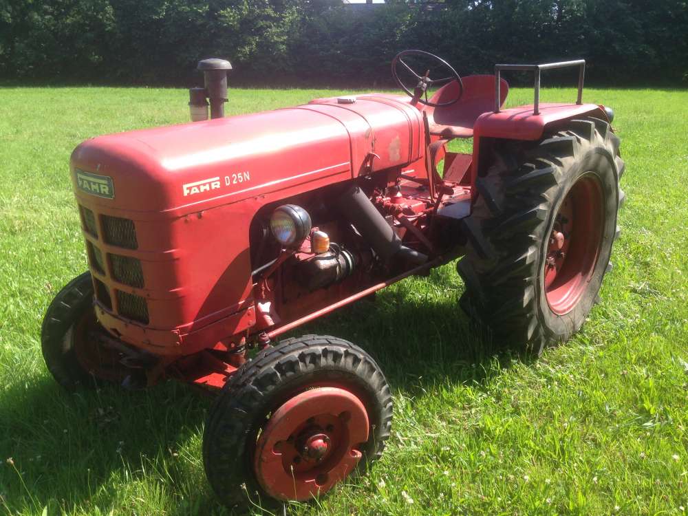 Fahr D25N, Bj. 1954, Deutz Motor F2M 414, 25 PS, nur 250 mal gebaut, Schlepper war bis vor einigen Jahren zugelassen, Motor Läuft sehr gut, Getriebe lässt sich gut schalten, Radgewichte, Mähwerk vorhanden, ältere Restauration.