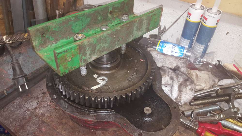 Habe mich dann den Hinterachsvorgelegen gewidmet. Zerlegen bitte. Ich hoffe das nur die Lager ausgelaufen sind und nicht der Lagersitz ausgeschlagen ist. Die Räder konnte man ca. 2 cm hin und her bewegen. :-((