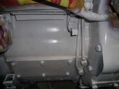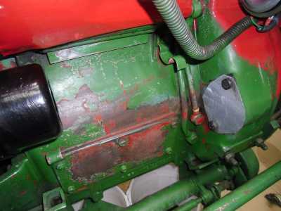 Dann das Anlasserloch mit einem Blech verschließen und alles Grundieren.