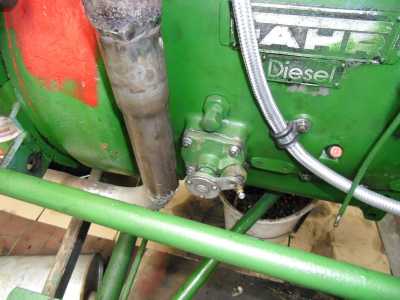 Nachdem der Anlasser wieder eingebaut war und ich meine neue Batterie angeklemmt habe, schaden an der Einspritzpumpe! Regelstange fest! Nur noch Vollgas möglich. Ich musste den Motordeckel öffnen, den Gehäuseentlüftungsfilter entfernen und die EP-losnehmen. Nach viel Schmiererei und hin und her bewegen der Regelstange endlich die Lösung. Nach 4 Wochen bangen und fummeln lässt sich die Regelstange wieder leicht bewegen. Alles wieder zusammengesetzt, die Leitungen angeschlossen, entlüftet und Öl eingefüllt. Dann der Moment der Erleichterung, der Motor dreht wieder normal im Standgas und die Drehzahlverstellung arbeitet völlig normal.