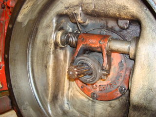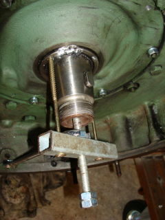 HInter der Kupplung befindet sich dann die Schwungscheibe auf einem Konuns auf der Kurbelwelle. Mutter SW 65 (!) lösen: