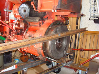 2. Ich habe mir aus U-Eisen einen Rollenbock geschweißt, um das Vorderteil abziehen zu können. Das hintere Teil ist aufgebockt.
