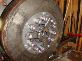 an den Bohrungen für die Kupplung ein langes U-Eisen angeschraubt und mit 2 Mann das Schwungrad abziehen (Gewicht gefühlte 100 kg, gewogen hab ich nicht, aber die Arme sind 5 cm länger geworden.