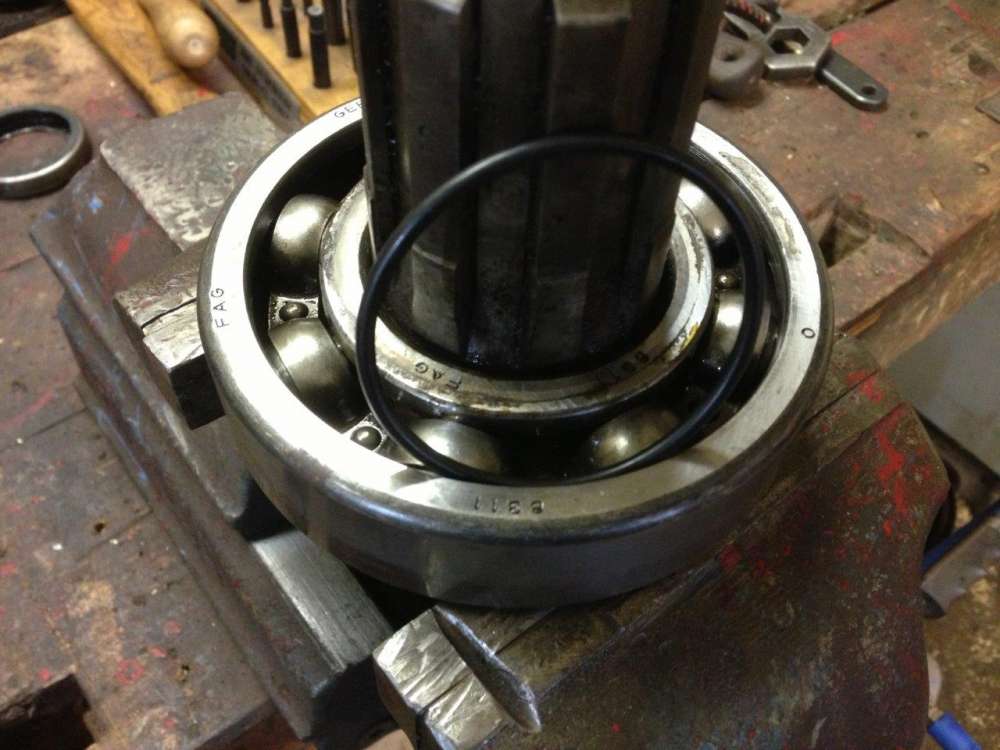Das Schieberad muss an seinen Platz, bevor das Achsrohr
