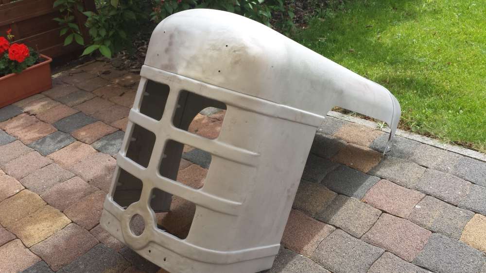 Und so sieht die Haube jetzt aus. Grundierung von Außen ist fertig.