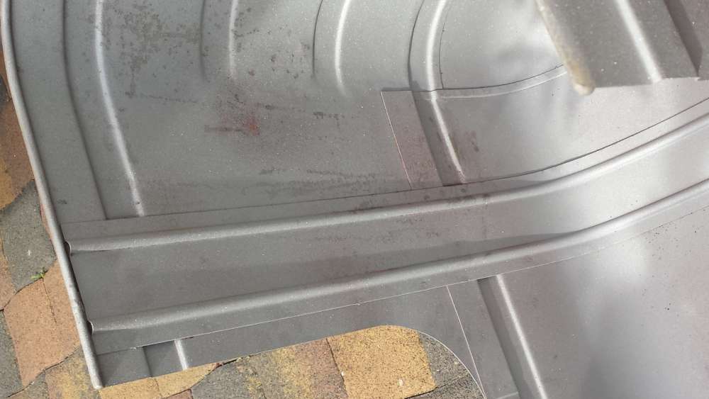 Nachdem die Haube nun vom Sandstrahlen zurück ist (übrigens wieder in Neuwied), ist das Blech jetzt blank und es muß schnellstens dem Rost vorgebeugt werde.