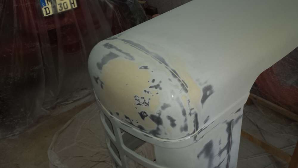 Danach kam wieder 2K-Epoxygrundierung drauf. Anschließend wieder schleifen und reinigen.