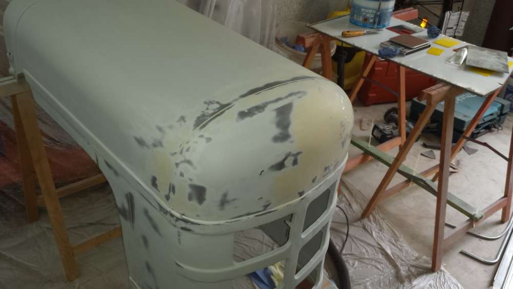 Auf jeden Fall kommen noch 2 Schichten Decklack von Erbedol drauf. Wenn alles klappt, sollte die Haube in einer Woche fertig sein.