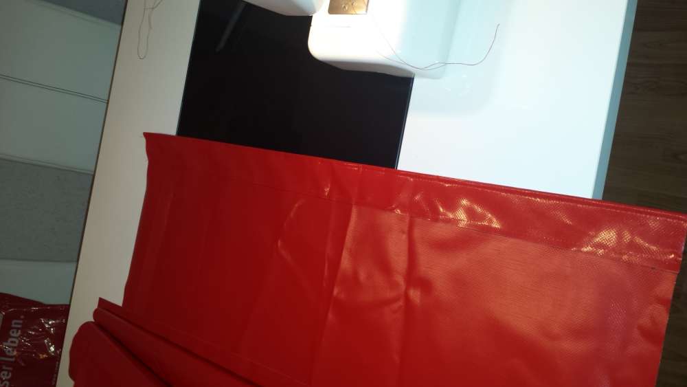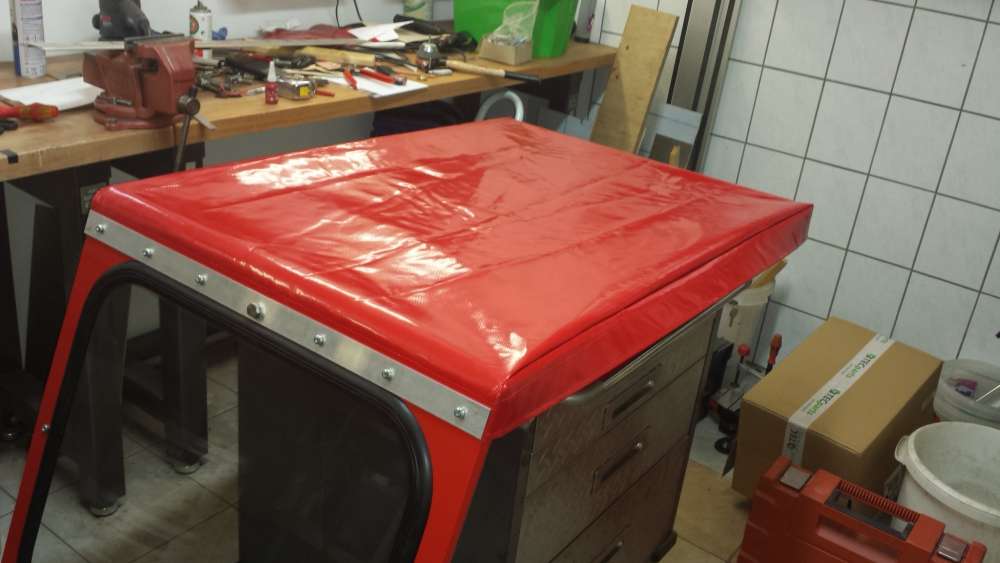 Gestern hab ich mit der Dachplane angefangen. Und sie wird ROT. Eigentlich sollte sie ja weiß werden, aber rot gefällt mir einfach besser.