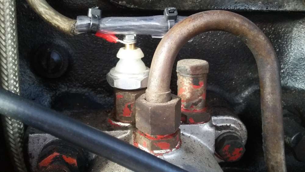 Den damaligen Vorschlag von HLO habe ich mir nochmal etwas genauer angeschaut. Ich traue mich aber nicht den bereits vorhandenen, verschlossenen Abgang (auf dem Foto rechts neben dem Öldruckschalter) zu öffnen um dort das Manometer anzuschliessen. Laut meiner D177 Ersatzteilliste handelt es sich bei dem Abgang nämlich um ein Überdruckventil. Aber vielleicht habe ich da ja auch was falsch verstanden.