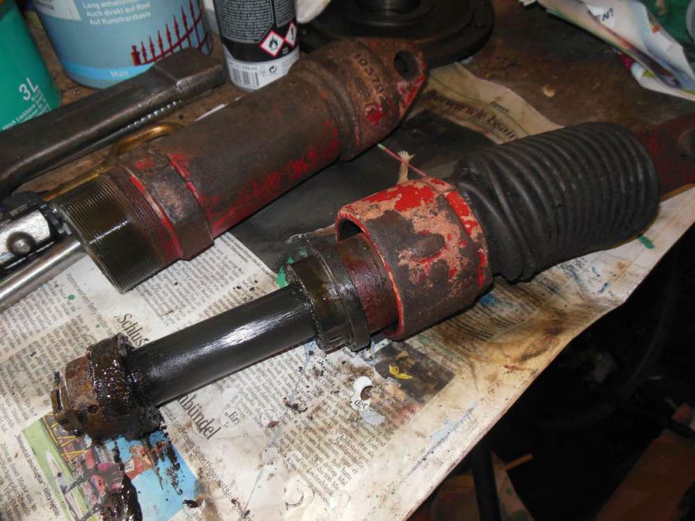Alles schön sauber machen und das Innere etwas überschleifen. Und Ersatzteile besorgen. O-Ringe und Achsmanschette vom BMW E36. Der Nutring war eine Herausforderung. Der teuerste sollte 53 (!!!) € kosten. Habe nach langem Suchen einen für 8€ gefunden.