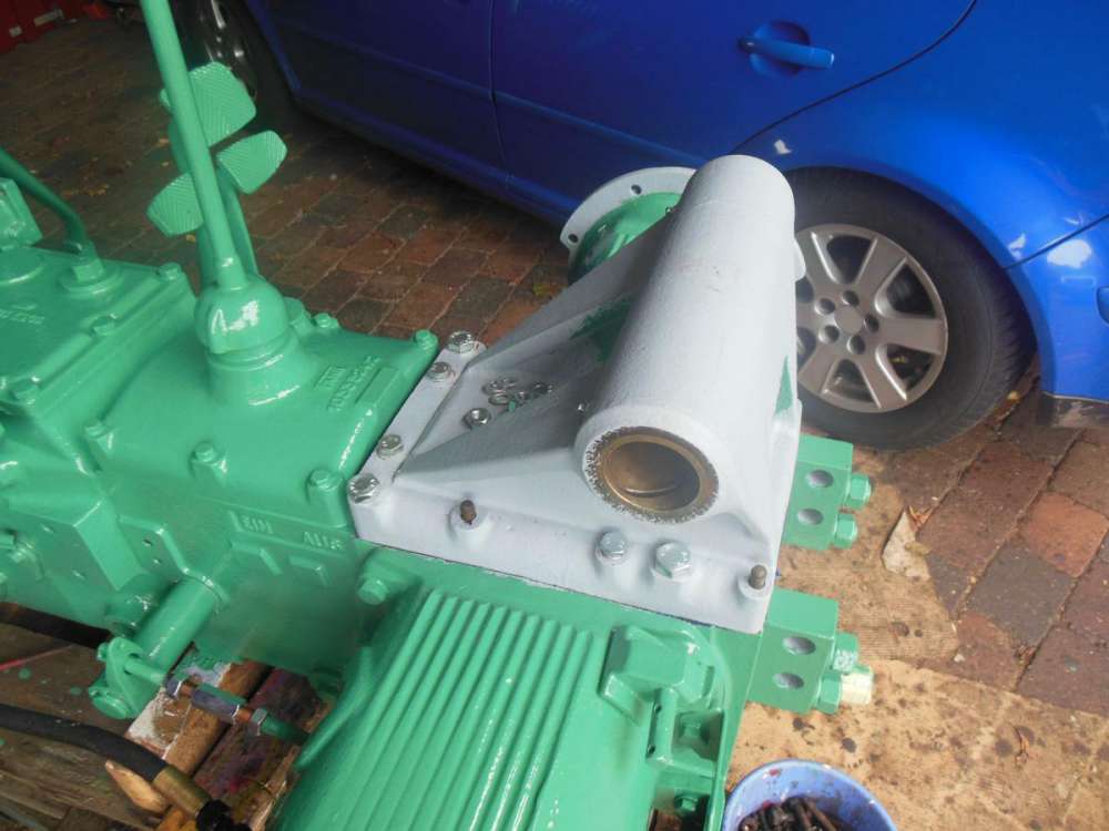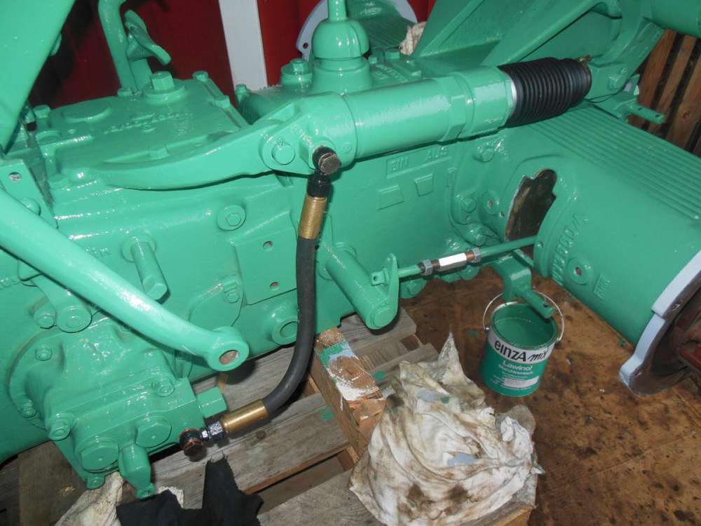 Nun konnte das Lenkgetriebe montiert und das Flanschgehäuse lackiert werden.