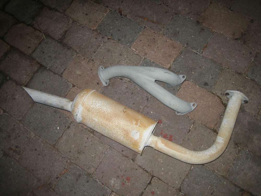 weiter gehts mit dem Auspuff. der war schon gestrahlt und grundiert, hat aber schon wieder Rost angesetzt.