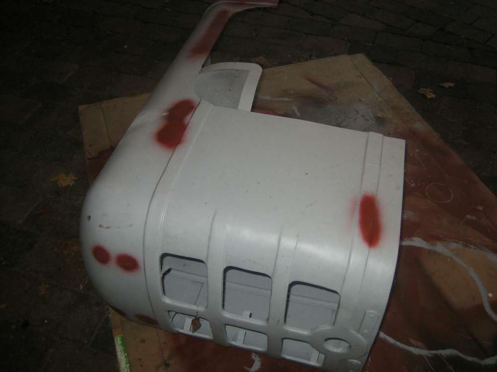 Bei der Haube fehlten noch die Halterungen. Die wurden mal entfernt um diese komischen Motorsportteile anzubauen.
