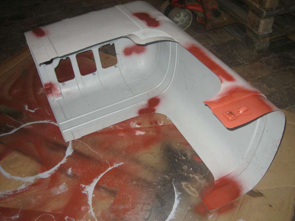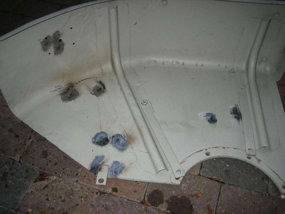 nun noch, die schon gerichteten, geschweißten, gestrahlten und grundierten Kotflügel und die Motorhaube.