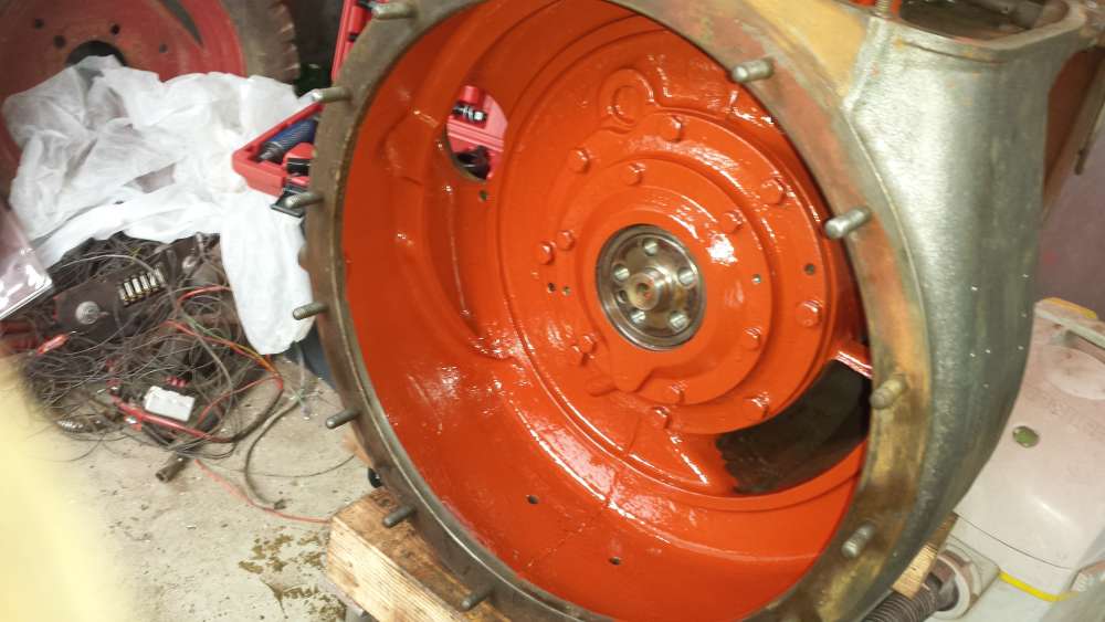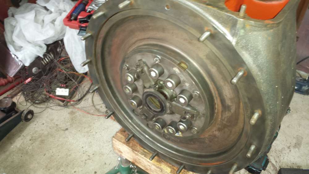 Nach dem Trennen hat mein einen freien Blick auf die Kupplung, welche ebenfalls raus muß. Kann man bei der Gelegenheit gleich die Beläge prüfen. Danach Schwungscheibe ausbauen.(Vorsicht, denn das Teil ist schwer und sitzt recht saugend im Gehäuse, also nicht verkanten.)