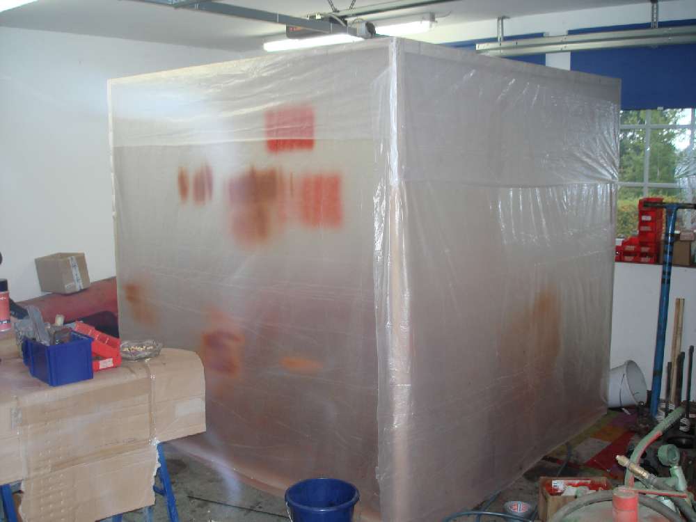Aber erst mal eine „provisorische“ Lackierkabine bauen