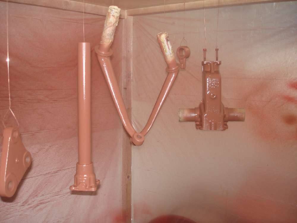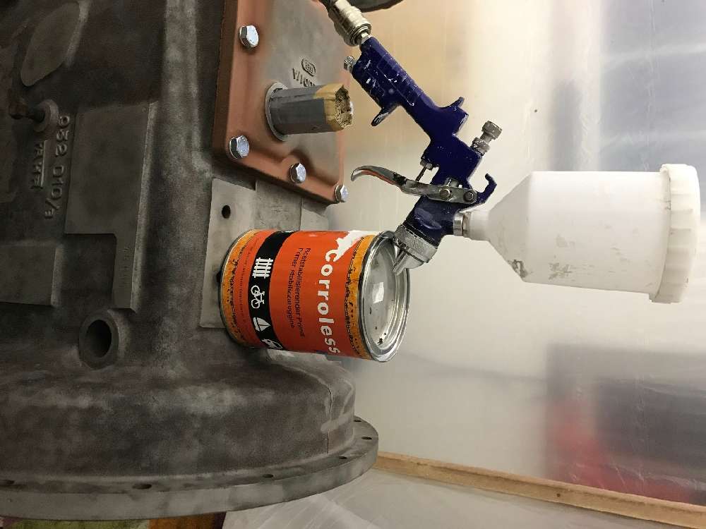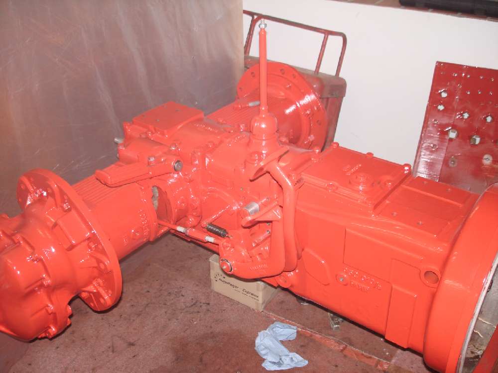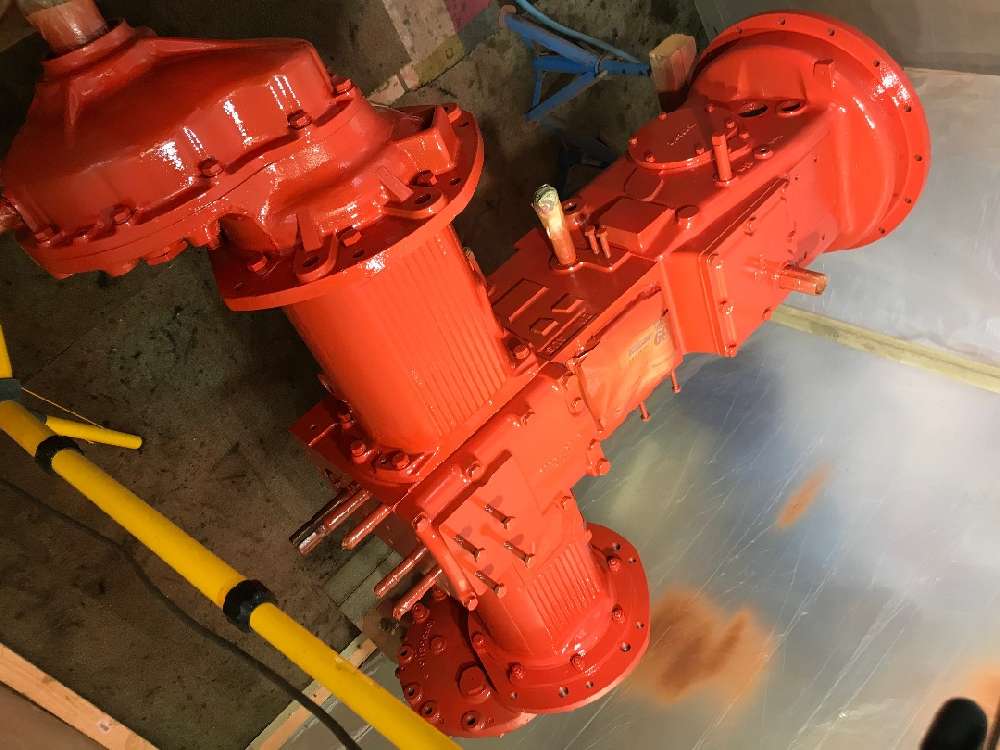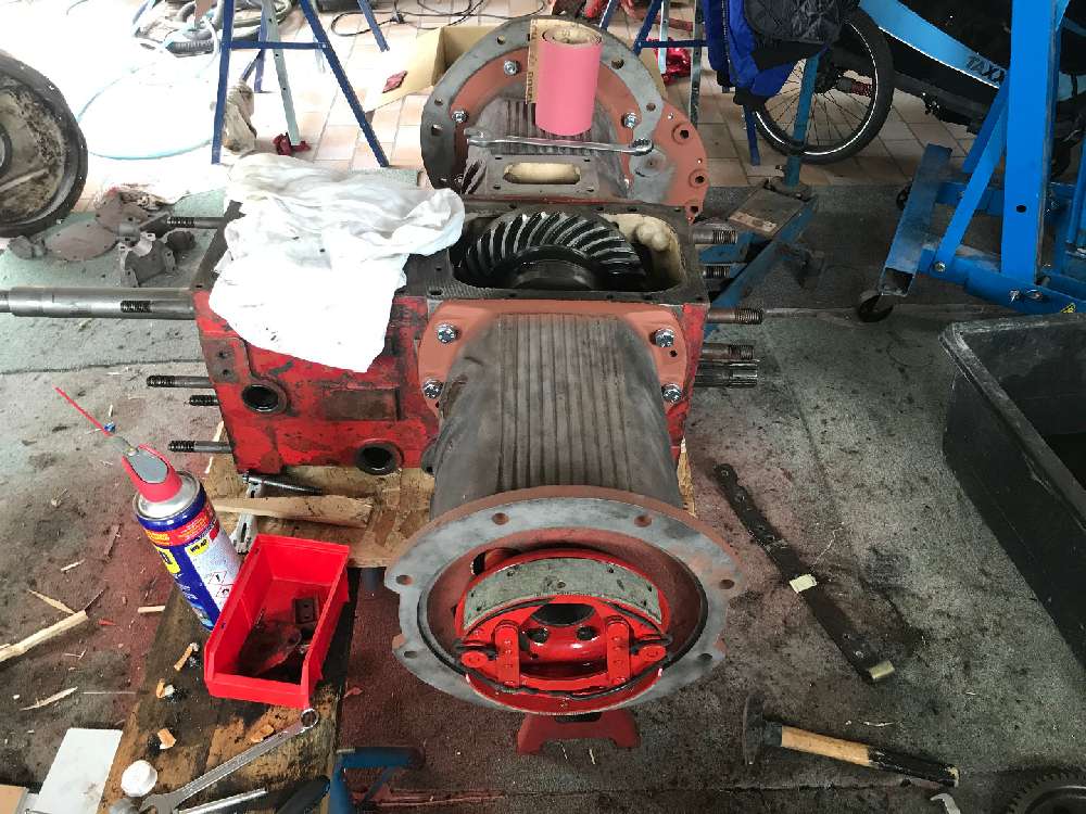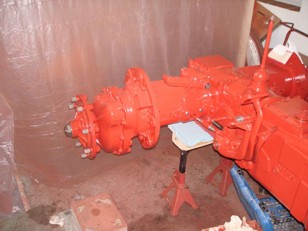 Nach dem die Hinterachse, Getriebegehäuse und Flanschgehäuse gestrahlt wurden und danach wieder alles inkl. neuer Lager und Dichtungen zusammengesetzt wurde konnte lackiert werden…